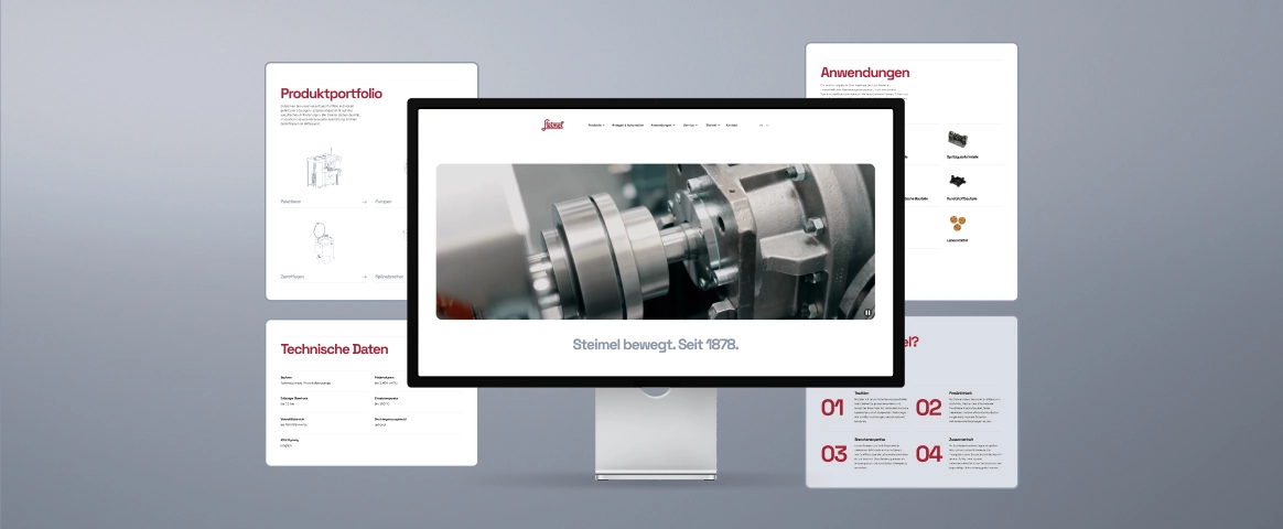 Im Zuge des Website-Relaunchs erhielt Steimel einen zeitgemäßen Webauftritt mit klarer Struktur, der Kunden verlässlich Orientierung bietet und zugleich die technische Kompetenz des Unternehmens überzeugend zum Ausdruck bringt.